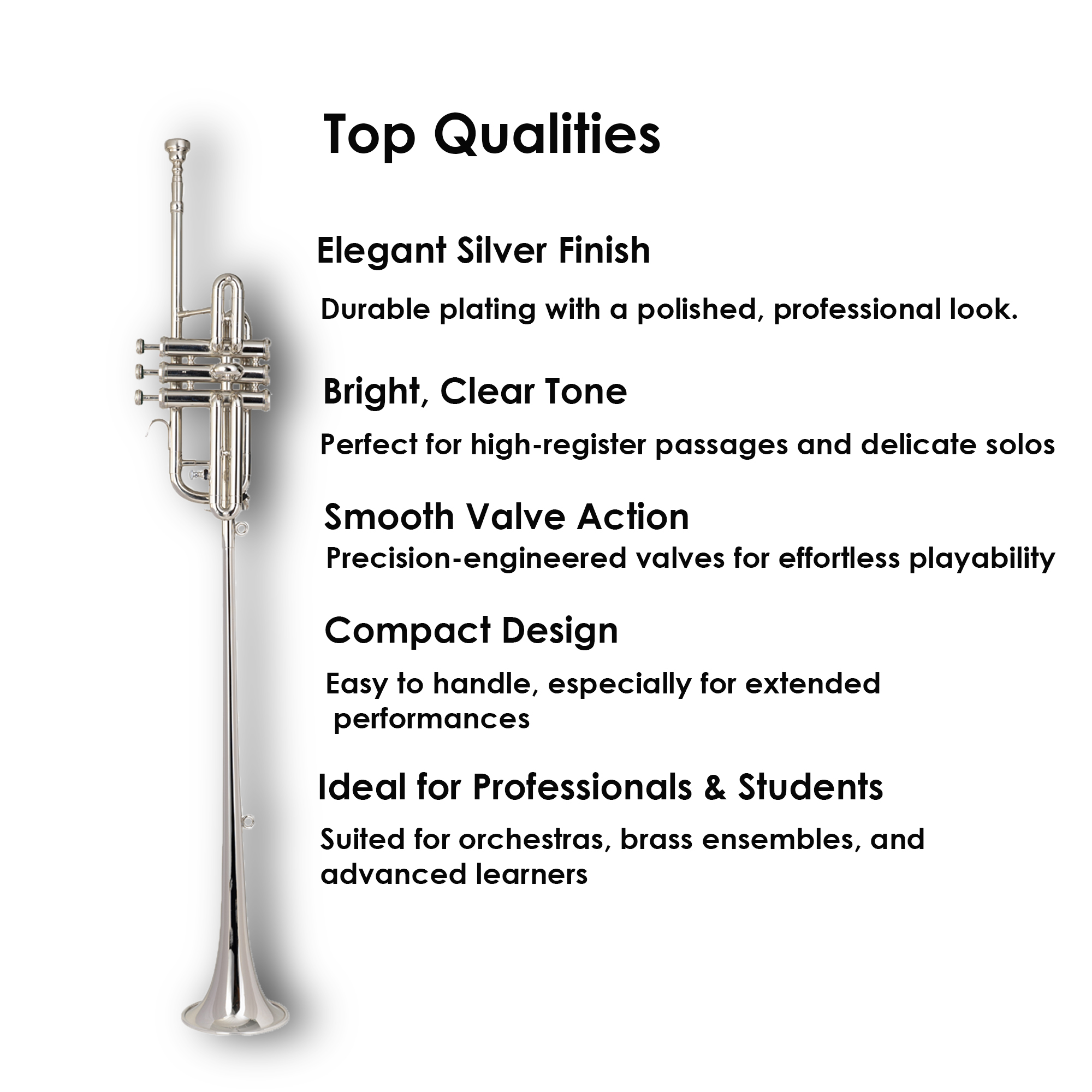 🎺 Premium Silver-Plated Brass – Elegant, durable, and stage-ready