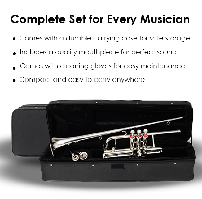 Whether practicing at home, performing in a school band, or playing on stage, the HERALD Trumpet provides clarity, resonance, and style. Each trumpet comes as a complete kit including a high-quality mouthpiece, lightweight carry case, and cleaning accessories—everything you need to start playing immediately.